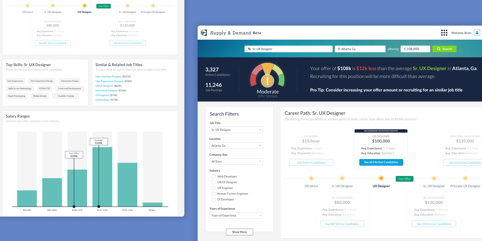 Lead a multidisciplinary team for the "Consumer" vertical consisting of interaction designer, visual designers and user researchers within a larger UX team of twenty plus. Responsible for main consumer website, profile and resume upload processes, iOS and Android native apps and white label third party job posting board platform.