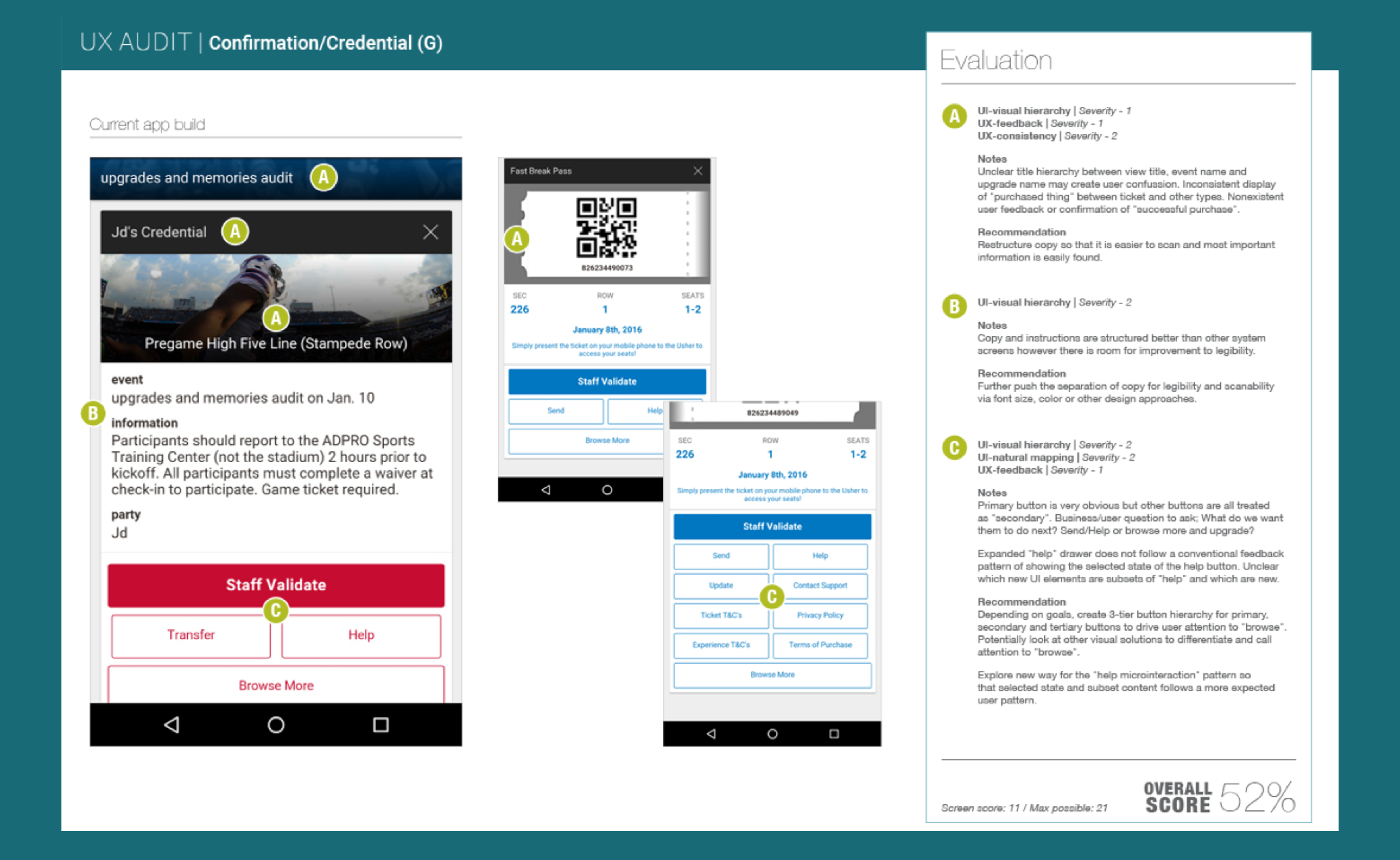 I lead the end-to-end user experience and design for a mobile app platform offering commerce, ticket sales, and data solutions for over 350 sports teams and entertainment venues. Evangelized and introduced user research and user testing principles to the company to help drive product roadmap decisions.