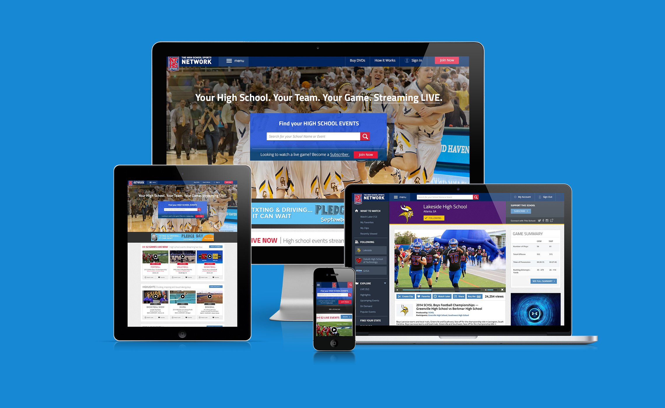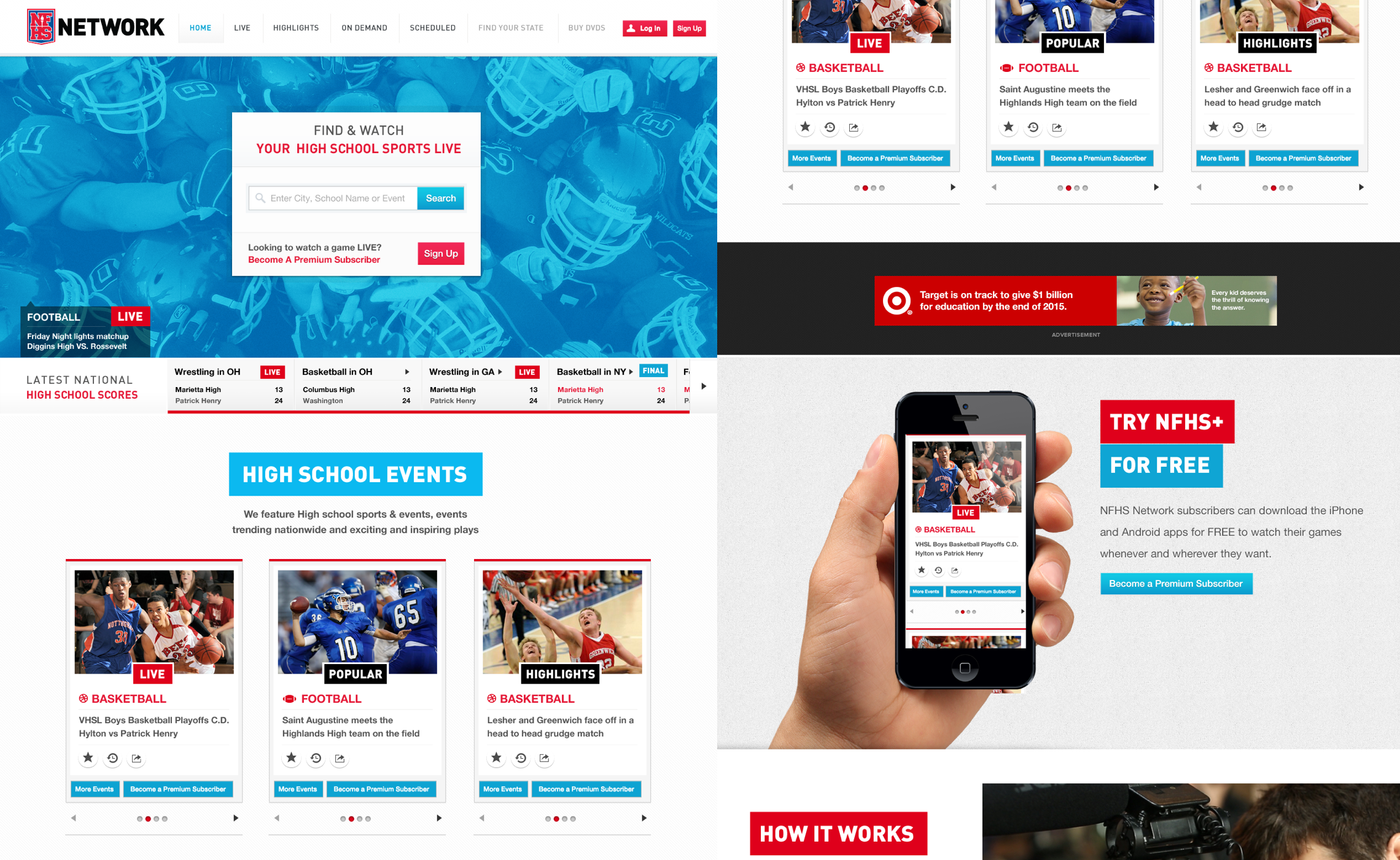 Responsible for all aspects of design for the nation's largest high school digital sports network working on; the NFHS Network consumer product, native apps, bespoke video streaming platform and enterprise admin backend.including UX, brand, sales and product.